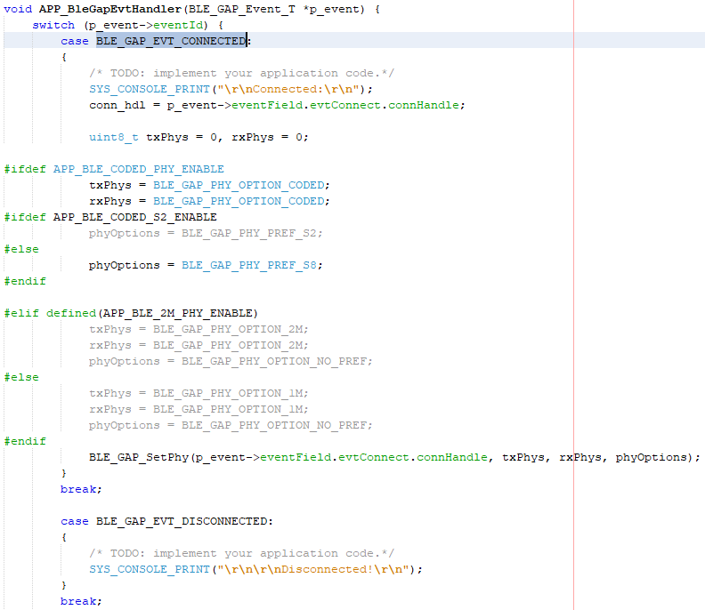 app_ble_handler.c,BLE_GAP_EVT_CONNECTEDevent will be generated when a BLE connection is completed