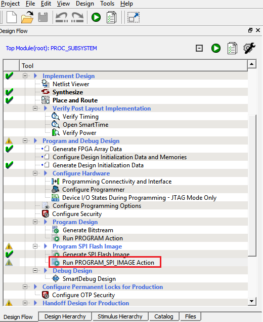 - Double-click Run PROGRAM_SPI_IMAGE Action to get the SPI flash programmed with the SPI directory and the programming images.