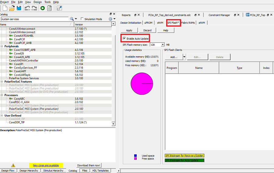 - Click Configure Design Initialization Data and Memories and select the SPI Flash tab.