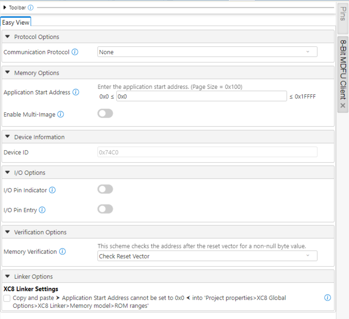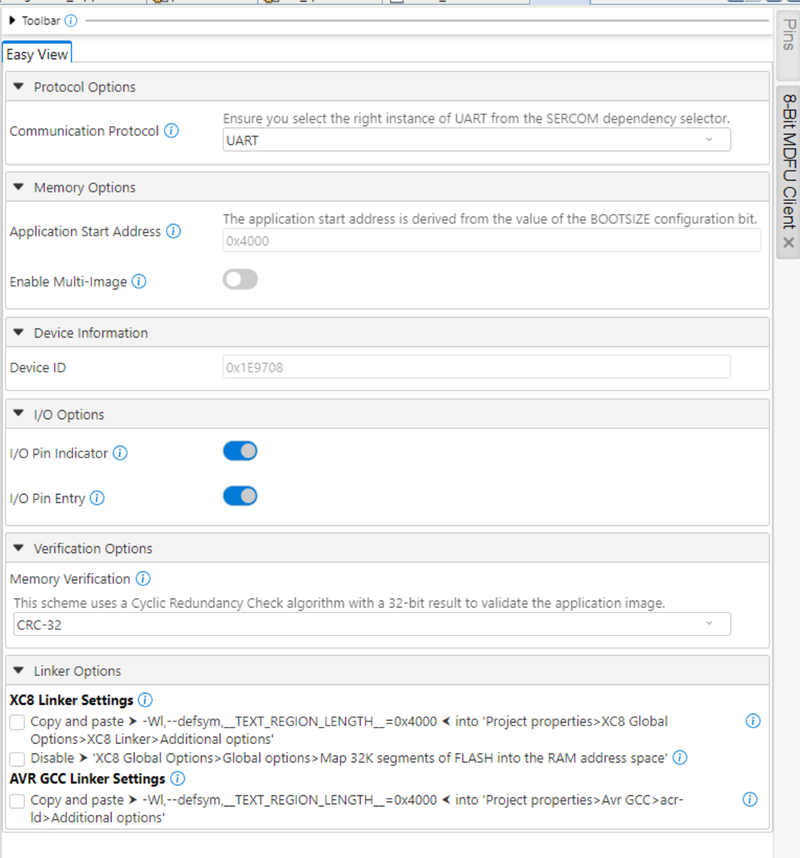 To properly configure bootloaders for any supported 8-bit device, the 8-Bit MDFU Client