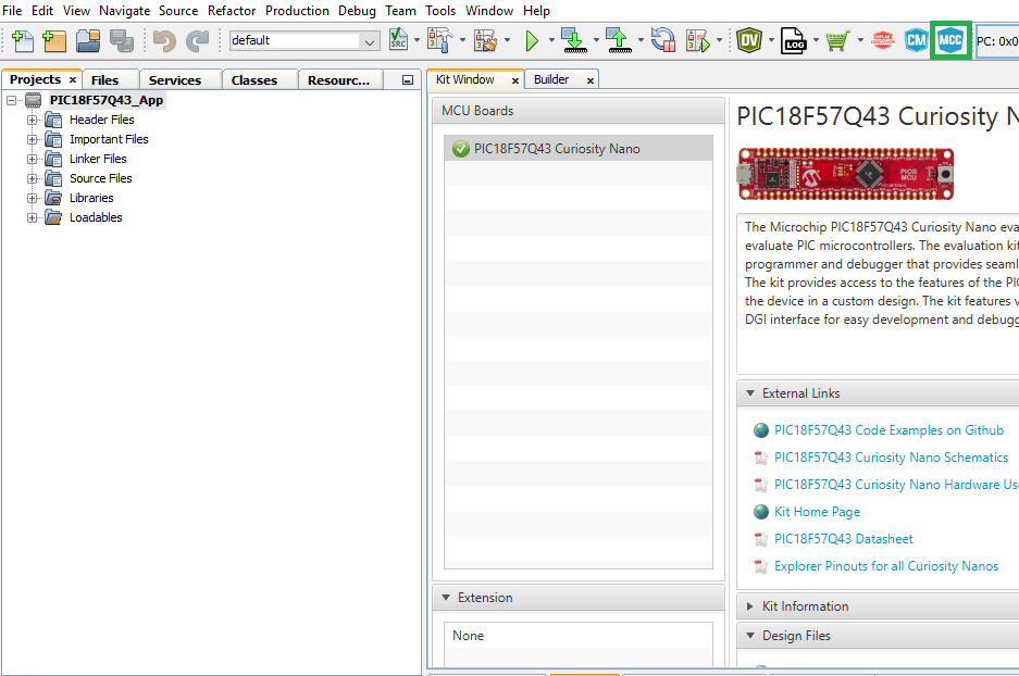 Figure 4-39. New Application Project - MCC opens up automatically when a new