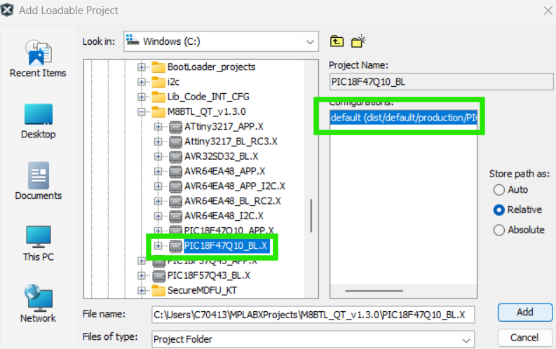 Figure 4-56. Adding the Bootloader to the Application Figure 4-57. Select the Bootloader default project Click Add and then Apply.