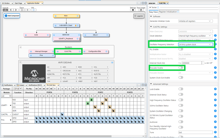 reliable communication. For this AVR128DA48 example, 24 MHz internal oscillator