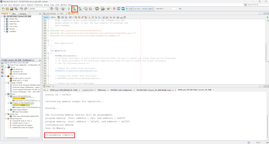 button. After this programming process ends, the LED on the PIC18F57Q43