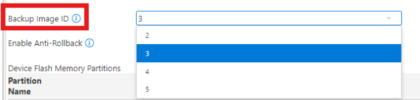 Description: The field represents the image ID for the backup image space that the user intends to use store a backup image.