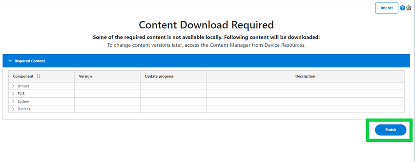 Click Finish in the Content Download Required window and wait for all the required content to be downloaded.