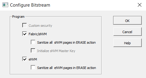 The following figure shows the Configure Bitstream dialog, which is updated as per the eNVM configurations.