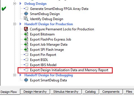 Double-click Design Initialization Data and Memory Report to generate the report. See the following figure.