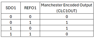 This example application shows how to use the CLC peripheral library and generate a Manchester-encoded output.