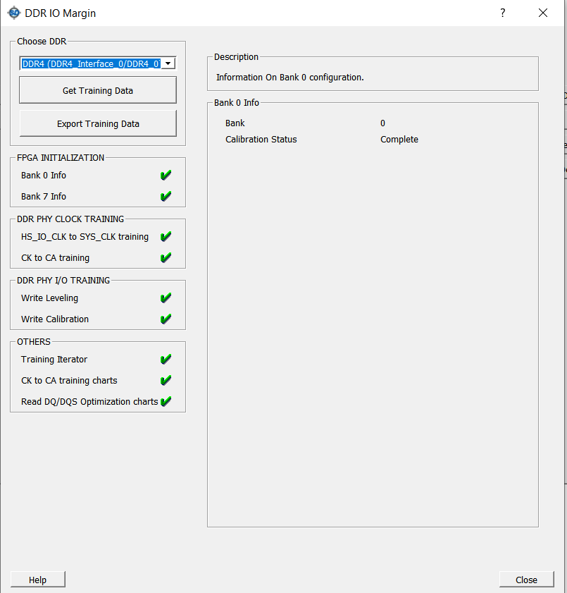 Initially, all options in the DDR IO Margin GUI are disabled. Select the required DDR instances and click Get Training Data. After this, a script is run for fetching the training data. After around two minutes the fetched information of the selected DDR Instance is displayed as shown in the following figure.