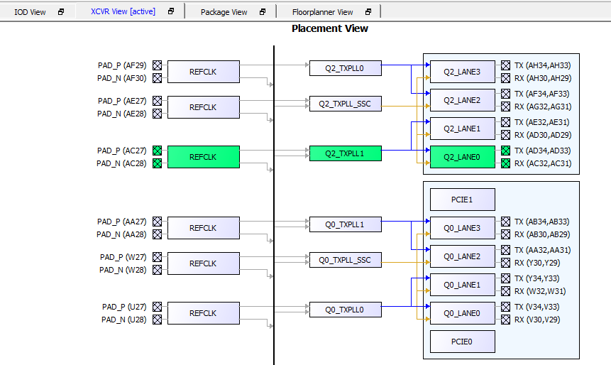 - Place TX_PLL, XCVR_REF_CLK, and XCVR_Debug, as shown in Figure 4-4 for Evaluation kit.