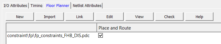 fp_constraints_FHB_DIS.pdc or fp_constraints_FHB_EN.pdc) must be visible. Ensure that the file is checked to be used for Place and Route.Figure 4-5. Constraint Files on the Floor Planner Attributes Tab