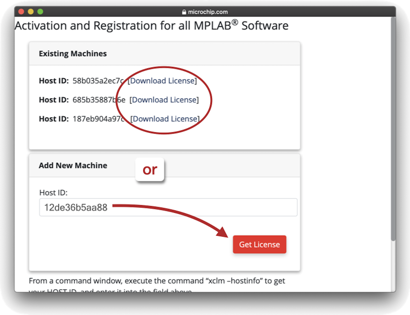 already been registered, you will first need to contact mailto://swlicensing@microchip.com for assistance removing old or unused host IDs associated with the