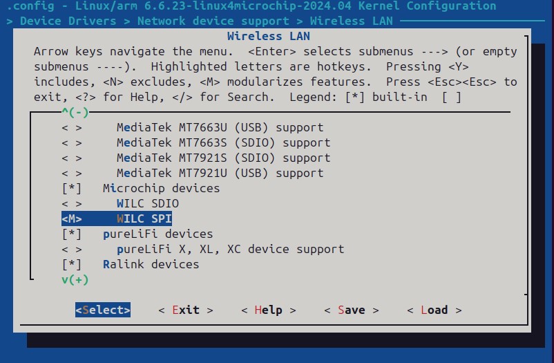 To use the SPI bus, select WILC SPI in the bus type item if the WILC1000/3000 chipset or module is connected to the platform via the SPI bus. The Use out of band interrupt option is hidden because the SPI bus requires the external IRQ pin to receive data from the WILC1000/3000.Note: For WILCS02, enable WILC SDIO along with Multi-Media Card (MMC) over SPI feature as described in the Config MMC-SPI section instead of enabling the WILC SPI Module.