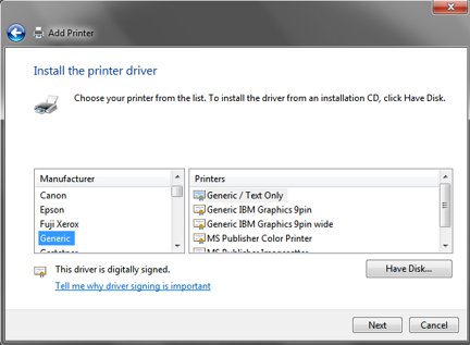 Follow the below steps to add Generic/Text Only printer and link it to the attached USB printer.