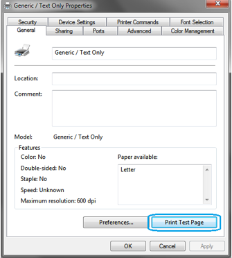 After successful installation of the Generic / Text Only printer, follow below steps to print a test page.