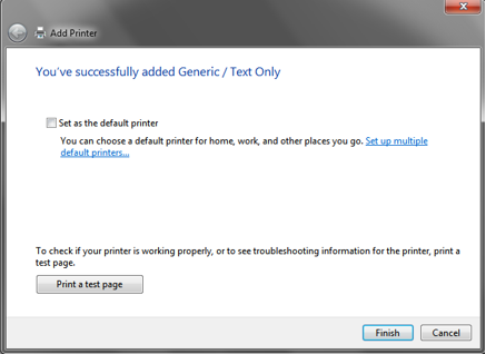 - Click Finish to complete the Add printer