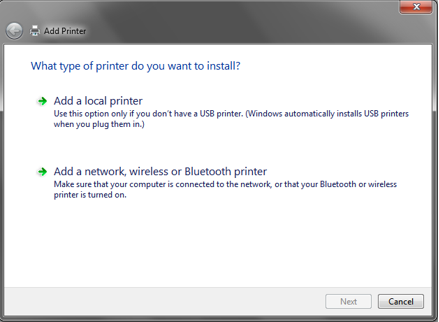 - In the Add Printer wizard,