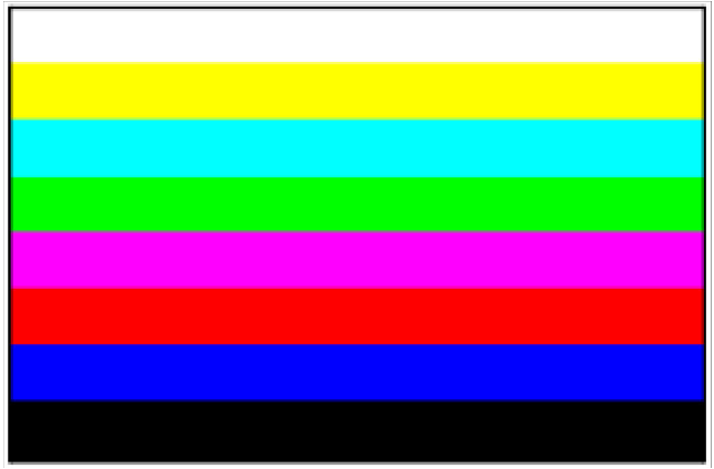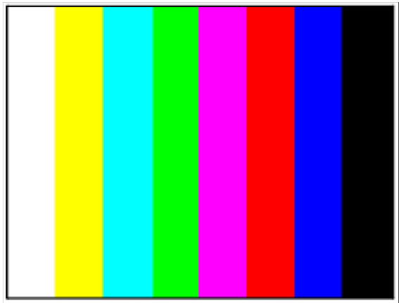 The color bar pattern comprises eight bars of the colors white, yellow, cyan, green, magenta, red, blue, and black.