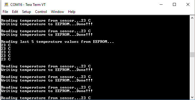 - The task also reads and prints the last five saved temperature data from the EEPROM when user enters any key on the console
