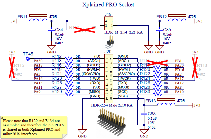 All pins shown in below figures are automatically configured by the PIC32CXMTSH-DB
