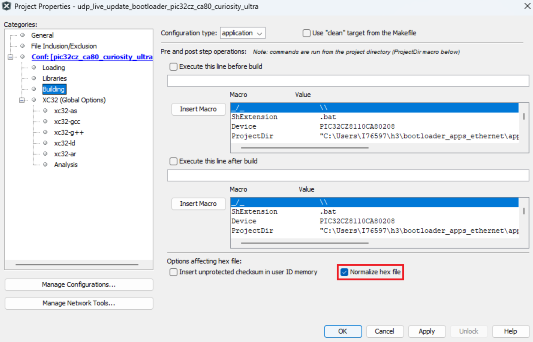 - As the Switcher application does not have any programming capabilities. Adding the live_update_app as loadable allows MPLAB X to create a unified hex file and program both these application in the respective memory location based on the respective linker scripts.