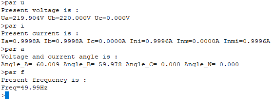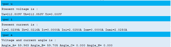 - On Terminal, enter PAR commands to read the measurements and check that the obtained values are accurate.