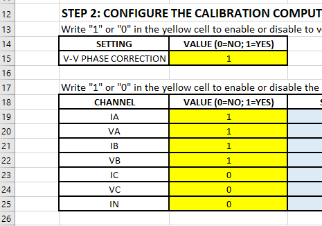 correction is desired, write “1” in the yellow cells. If enabled, the metrology