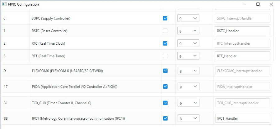 The following image summarizes the configuration of the interruptions used by the different applications and the priorities: