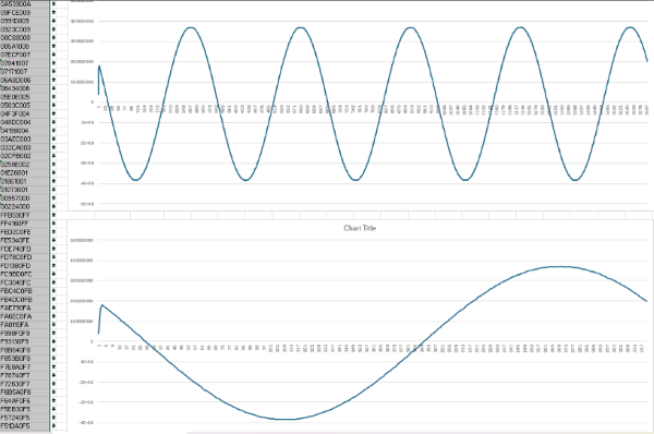Fs = 16000 ksps. Fin = 50Hz. Fs/Fin = 320 samples/cycle. Total samples = 320 * 5 = 1600 samples in 5 cycles.