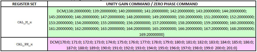 DCR) to check that the calibration registers were successfully updated (values in