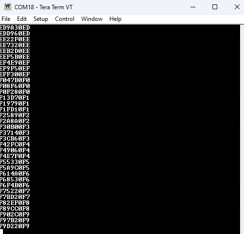 All samples are automatically captured in the data memory by DMA peripheral without any interaction with the user application. Once all samples are captured, interrupt is triggered and, data samples are sent to the terminal console application for analysis with an external tool.