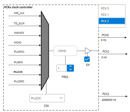 adjusts the PCK2 prescaler depending on its own configuration assuming that the PCK2