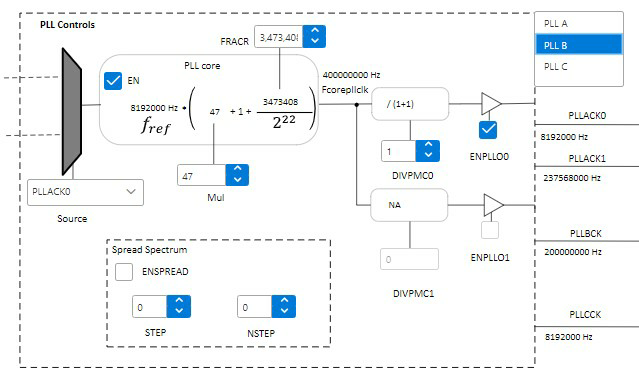 output is internally configured as 8192000 Hz, using a PRES = 0.