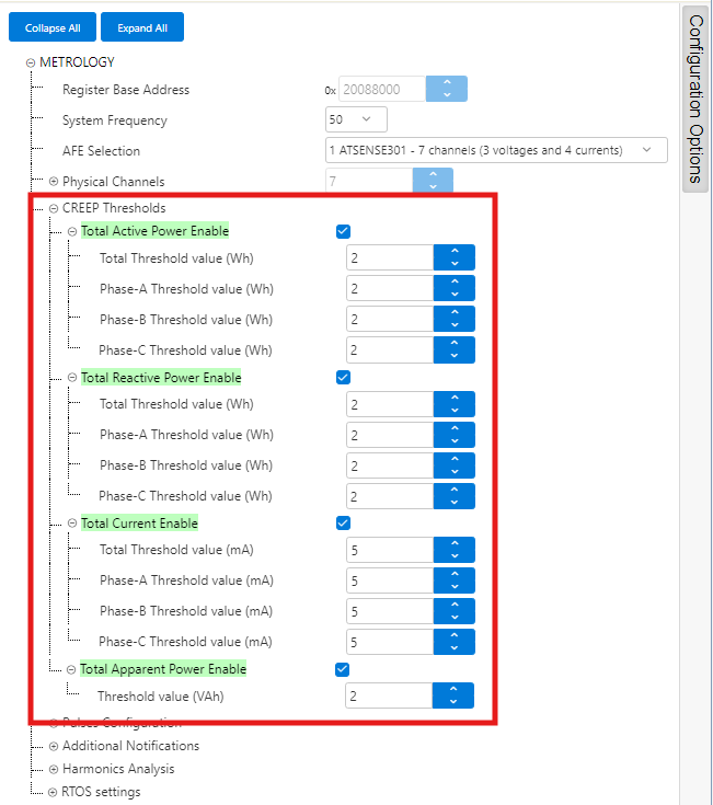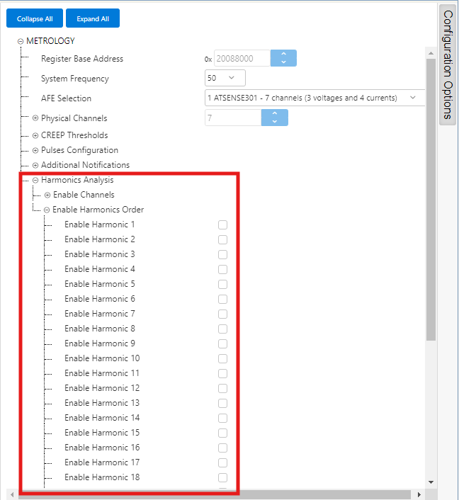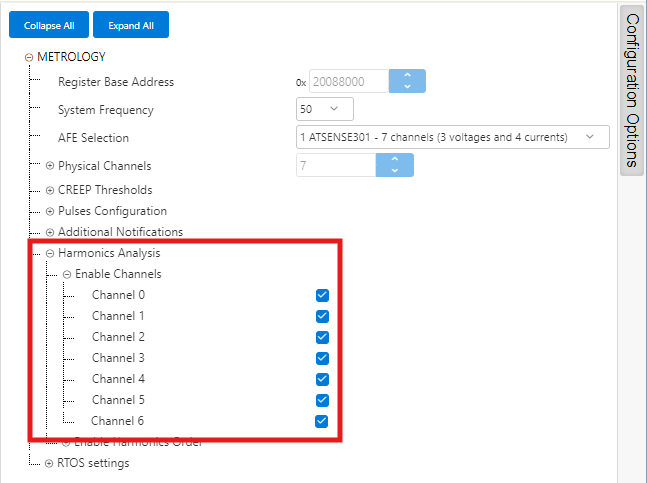- This configuration option is used to disable harmonic analysis on different channels. By default, harmonic analysis is enabled for all channels, but user may disable this analysis on any channel if not required.