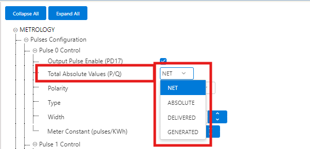 - Magnitude and measurement Type selected (Current, Active, Reactive and Apparent Power, both total and Fundamental only) (Net, Absolute, Delivered, Generated)