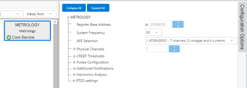 The Metrology driver library is configured through MCC. Following is the MCC configuration window for metrology driver and a brief description of available options.