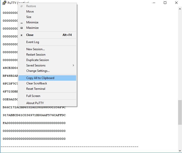 PuTTy, select Copy All to Clipboard, and