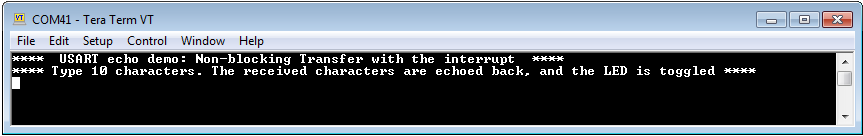 This example shows the read and write operation over a UART in a non-blocking manner. The peripheral interrupt is used to manage the transfer. It receives 10 characters from the terminal window and echoes them back.