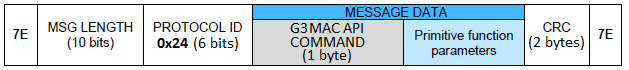 This protocol consists of the serialization of the G3 MAC API different primitives.Figure 1-11. G3 MAC API USI Frame