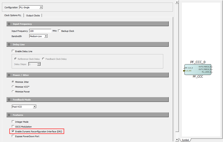 - Select Enable Dynamic Reconfiguration Interface in the CCC configurator as shown in the following figure.