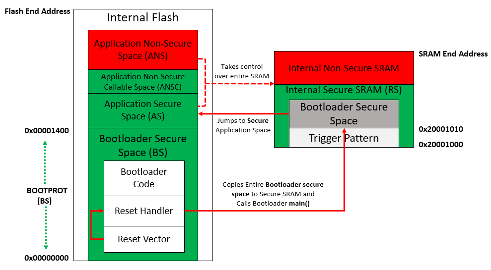 0x1400for PIC32CM LS00/LS60 after programming. Therefore, the applications Reset handler should be part of Application Secure Region which can further call its Non-Secure region if any.