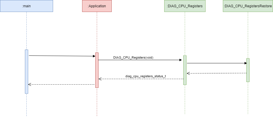 3.4 SW_CPU_REGISTER_TEST_01 This module contains functional safety diagnostics APIs for CPU Registers. The following is an UML Interface diagram for SW_CPU_REGISTER_TEST_01: Figure 3-7. The following is an UML Sequence diagram for SW_CPU_REGISTER_TEST_01: Figure 3-8.