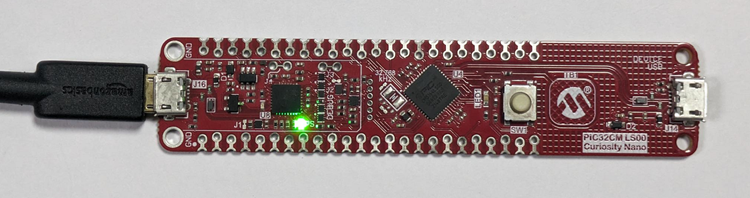 PIC32CM LS00 Curiosity Nanois selected as hardware tool to program/debug the application - Build the code and program the device by clicking on the Make and Program button in MPLAB X IDE tool bar