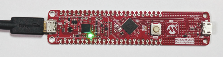 - Press the switch SW1 on the PIC32CM LS00 Curiosity Nano+ Touch evaluation kit to put the system in deadlock