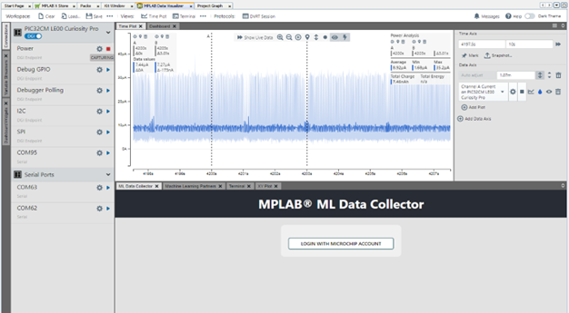Data Visualizer.Note: The MPLAB Data Visualizer is a program to process and visualize data. The MPLAB Data Visualizer can receive data from various sources, such as the Embedded Debugger Data Gateway Interface (EDBG DGI) and COM ports. It is possible to track an application in run-time using a terminal graph or oscilloscope. It analyzes the power consumption of an application through correlation of code execution and power consumption when used together with a supported probe or board.