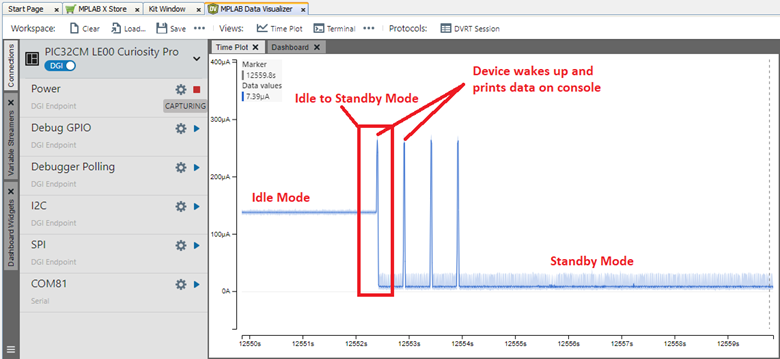 3.6.2 Low Power Application on PIC32CM LE00 Curiosity Pro Evaluation Kit