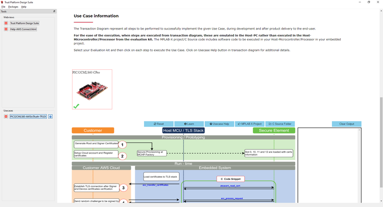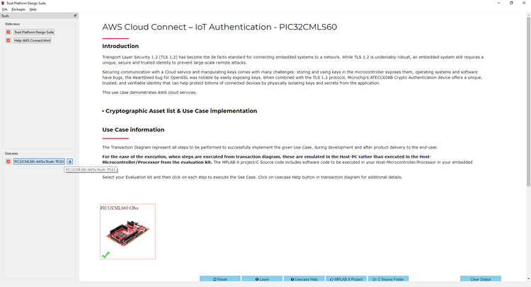 - Connect PIC32CMLS60 Curiosity Pro Development Board to PC running Trust Platform Design Suite.