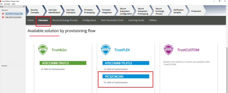the PIC32CMLS60_AWSIoTAuth-TFLEX from the Usecases.