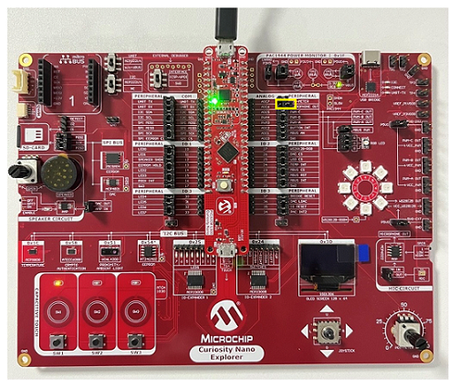PIC32CM LS00 Curiosity Nanois selected as hardware tool to program/debug the application - Build the code and program the device by clicking on the Make and Program button in MPLAB X IDE tool bar